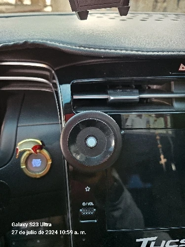 Works beautifully. Very strong magnet. You can turn the phone to any direction 360º.